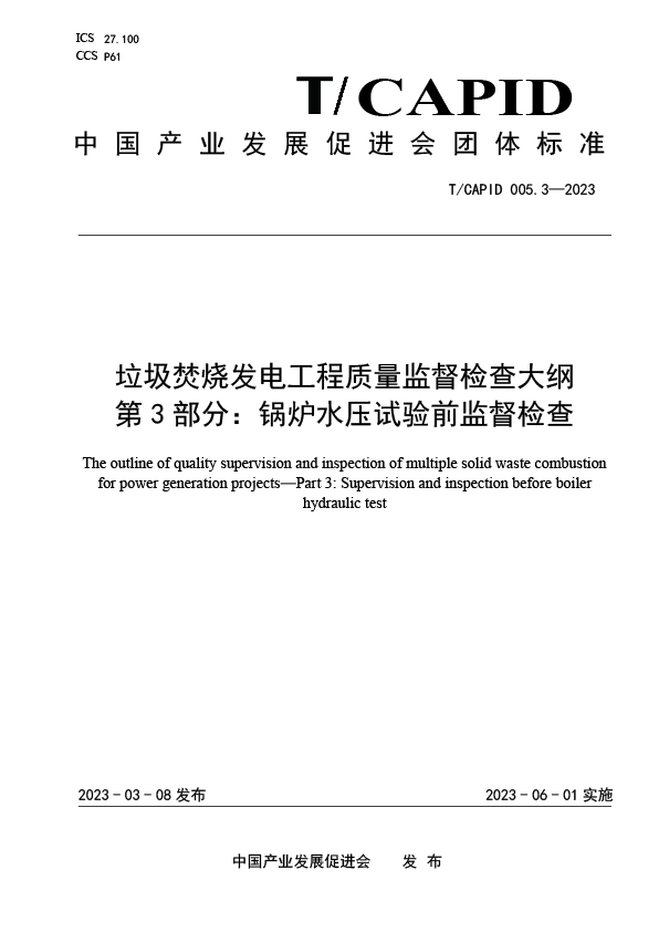 垃圾焚烧发电工程质量监督检查大纲 第5部分:整套启动试运前监督检查-发布稿